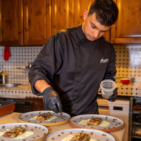 Cada experiencia incluye un menú de varios pasos —entrada, primer plato, segundo plato y postre— preparado con ingredientes frescos y locales, cuidando cada detalle para que disfrutes una velada cálida, relajada y llena de sabor.
